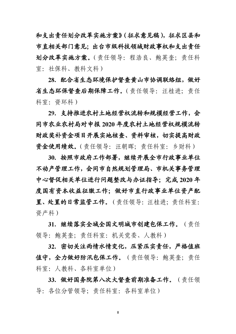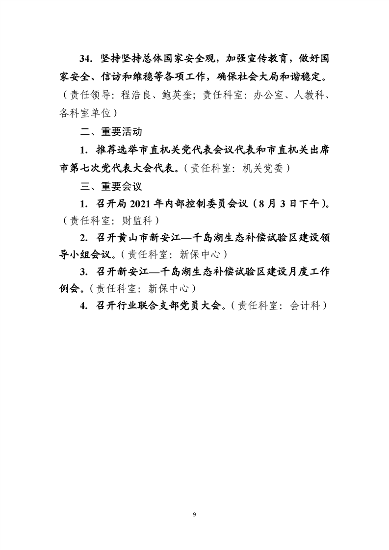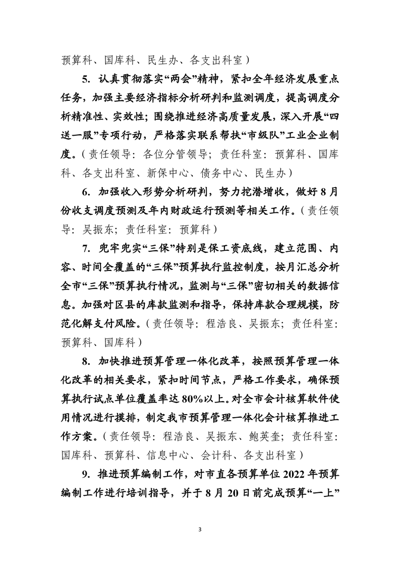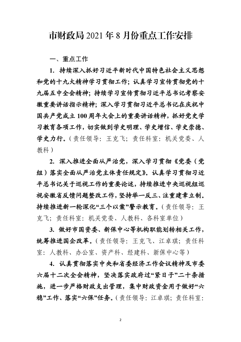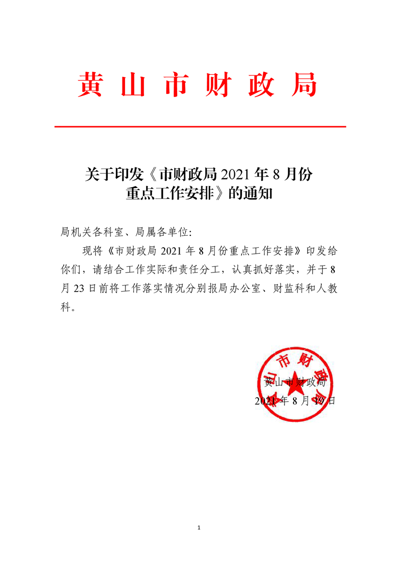 关于印发《市财政局2021年8月份重点工作安排》的通知